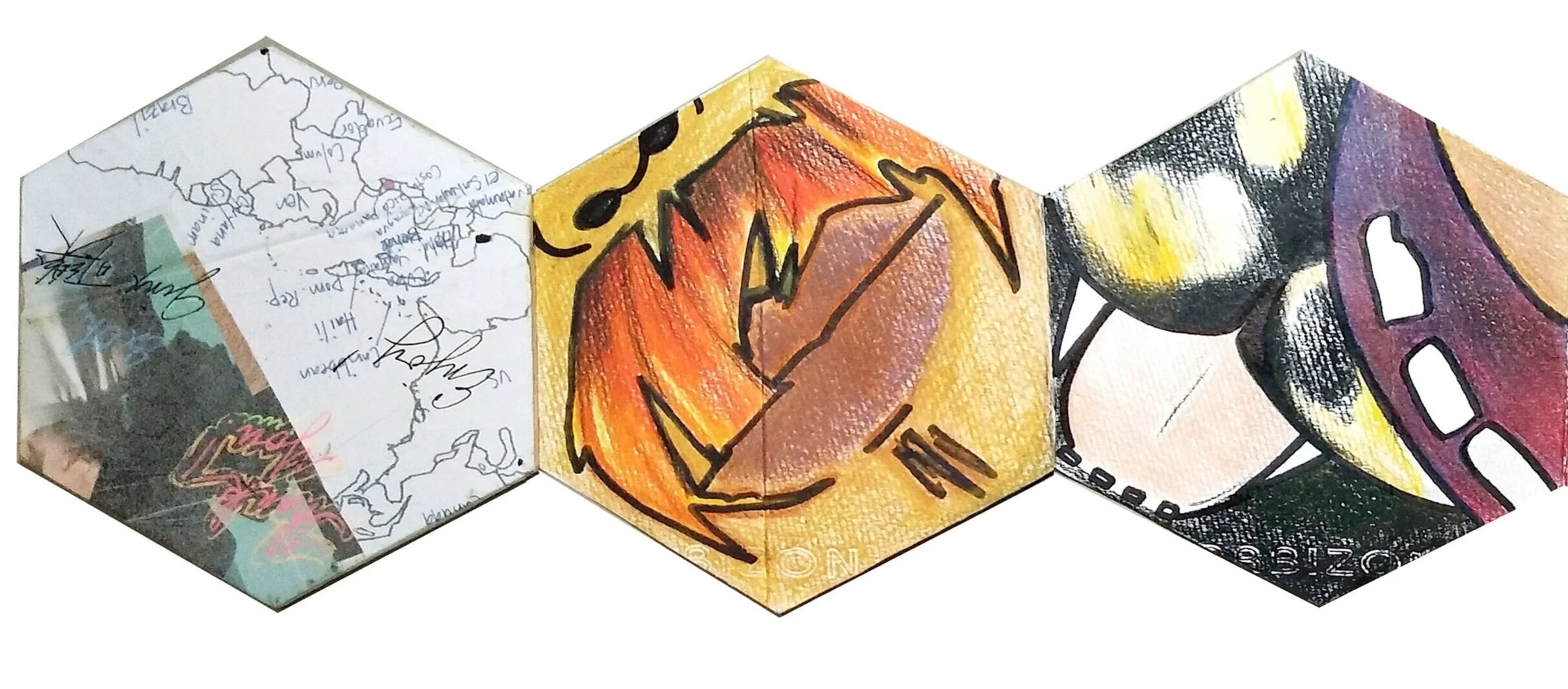 "Thank you, Enjoy", handmade accordion fold artist book, 100x14cm, colored pencil and Sharpie marker on Canson paper